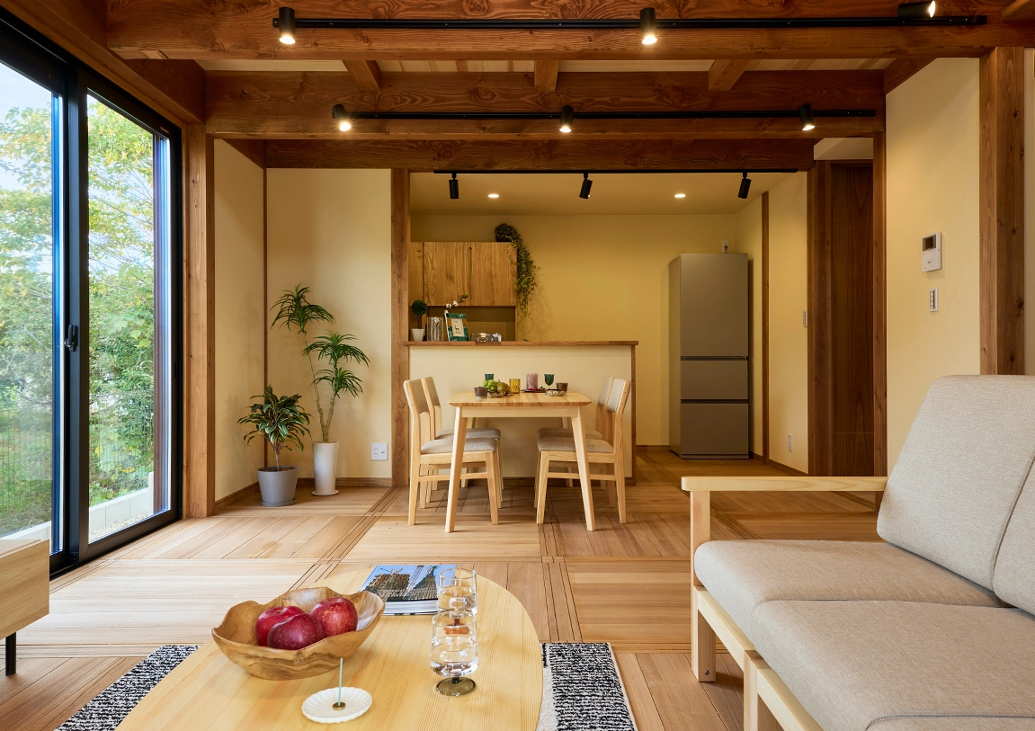 間口が広いメーターモジュール。4寸の柱が現しの真壁。美しくてどんなインテリアでもよく馴染むベーシックさがcotton1/2の魅力。