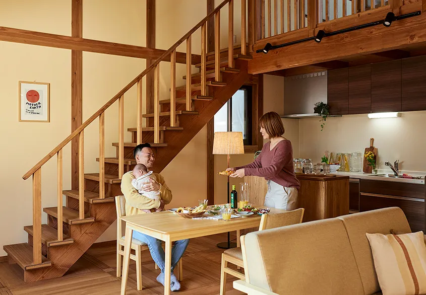 お肌にやわらかく、温もり、心癒される木の香りに包まれた住まいは、家族の健康を一番に考えたい方におすすめです。