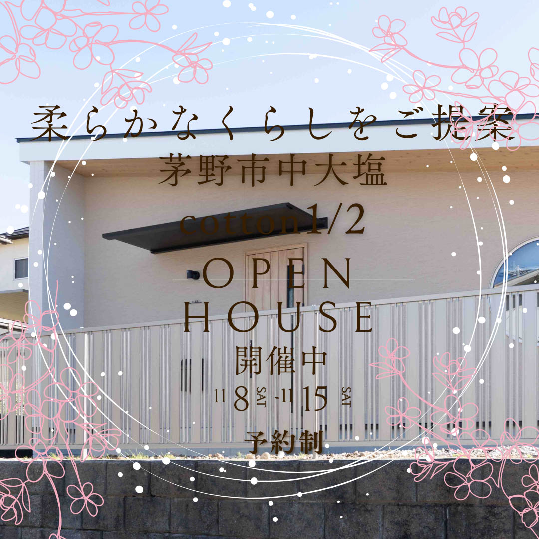 cotton1/2 無垢の家「桐の家」は、柔らかい暮らしをテーマに自然素材を使い、木の香り豊かで心地よさと温かみを感じられる空間を提供しています。住宅の性能としても妥協はありません。断熱等級6、耐震等級3を可能とする構造もご覧頂けます。見学会当日はエアコン1台運転での暖かさもご体感頂けます。また、お施主様の希望により標準仕様以外のサッシや木製建具などの特徴もございます。ぜひこの機会に、cotton1/2の魅力をご覧になり、新しい家づくりのご参考にして頂けると幸いです。皆さまのご来場を心よりお待ちしております。