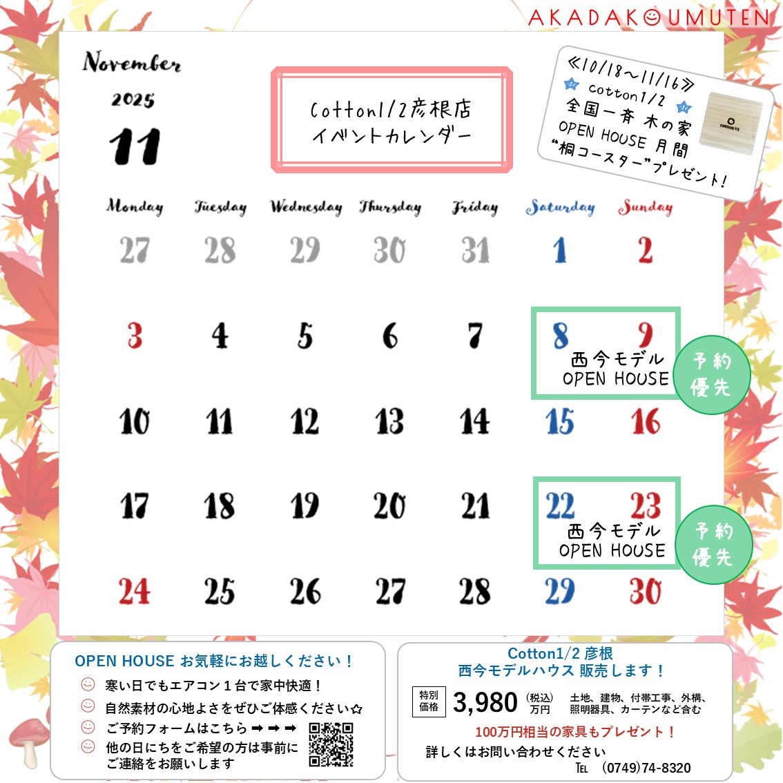 【11/8㈯9㈰・22㈯23㈰】OPEN HOUSE開催☆