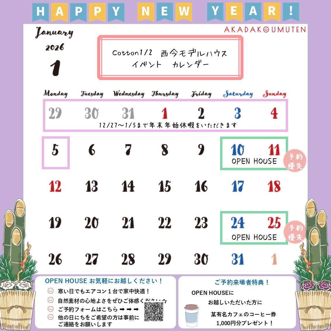 【1/10㈯11㈰・24㈯25㈰】OPEN HOUSE開催☆