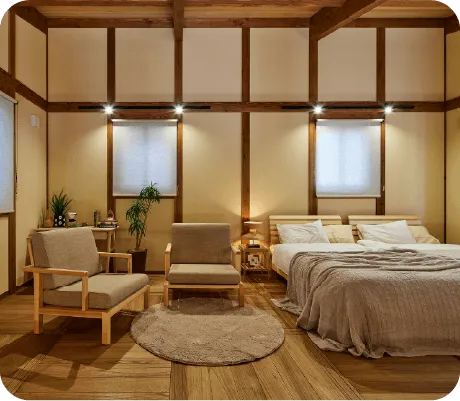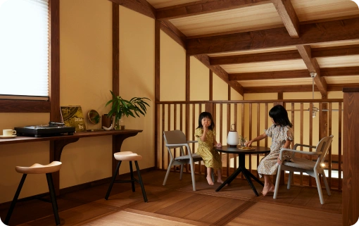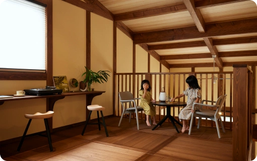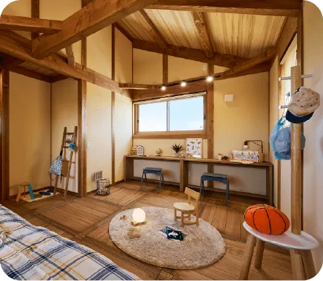 自然の調湿作用で湿度を整え、一年中快適な空間をつくります。木の香りに包まれた、健やかで心地よい住まいです。