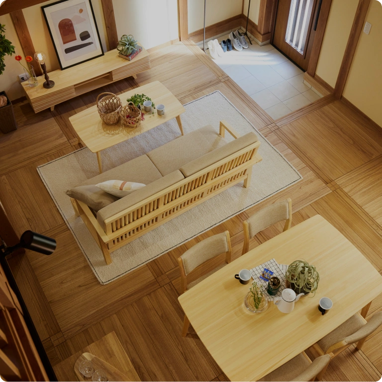 木の香りに包まれた空間、無垢材のやさしい肌触り、開放感のある広々とした設計。写真やカタログでは伝わらない、心地よさとこだわりを五感で体感してください。