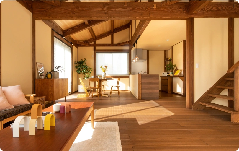 伝統技術 × 最新技術で、心地よい住まいを実現。四寸の柱や梁、木の香りや肌触り、